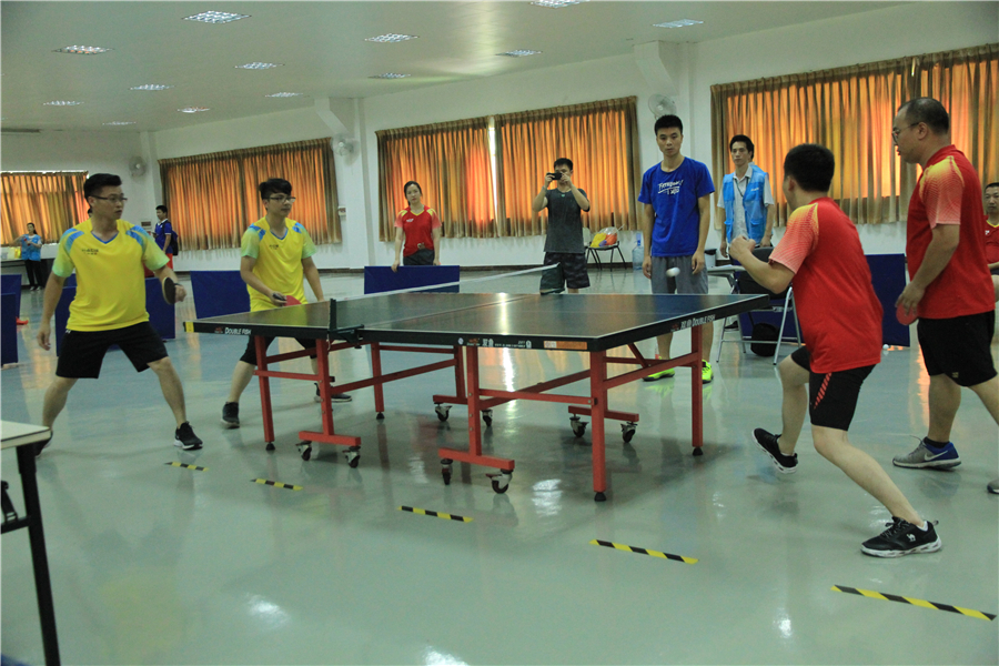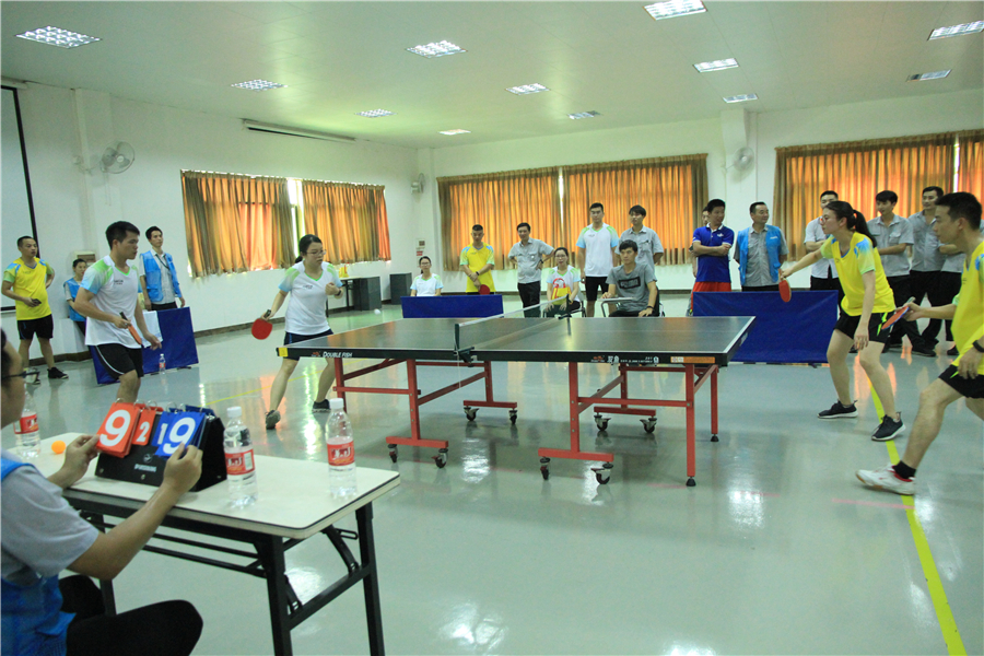 由于气象原因 ,8月15日的篮球赛以及8月16日拔河赛延期进行  。而“HG视讯杯”活动会乒乓球赛今日四雄角逐 ,现场空气异常强烈!